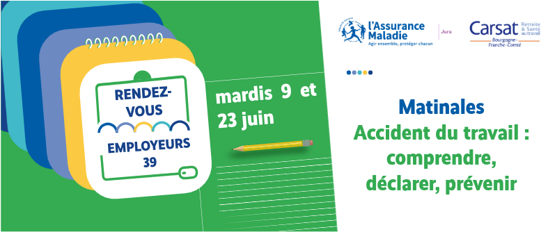 La Caisse Primaire d'Assurance Maladie du Jura et la Carsat Bourgogne-Franche-Comté organisent ensemble deux rendez-vous employeurs 39. Ces événements auront pour thème l'Accident du travail : comprendre, déclarer, prévenir.