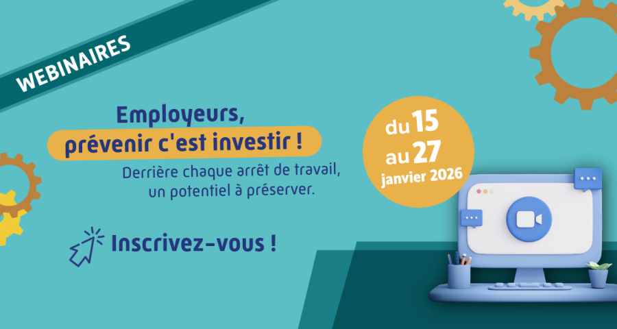 Ces webinaires sont gratuits et ouverts à tous les employeurs et acteurs de la prévention (responsables RH, QVCT, QSE, dirigeants ou gestionnaires de paie…).